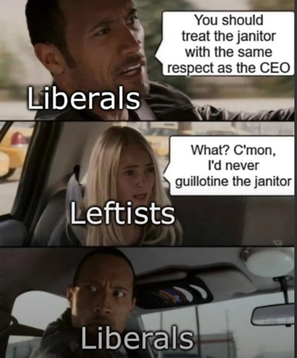 Liberals fundamentally believe in the capitalist system. They would just like to reform it, or regulate it just the right amount. Within the US political spectrum, liberals are cast as “left wing”. Here on Lemmy, many people will encounter (perhaps for the first time) political perspectives that disdain liberals as the moderate wing of fascism. To these perspectives, liberalism is so wedded to capitalism, that it will sooner capitulate to naked fascism than make common cause with any anticapitalist revolutionaries.