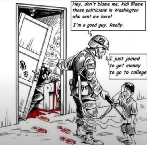 They’re all dumb as fuck. Why is signing up to kill people ok because it paid off your loans?