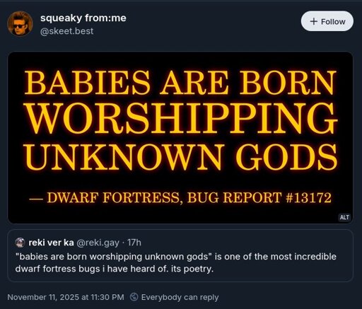 The Picard Maneuver@lemmy.world to Gaming@lemmy.worldEnglish · 1 day agoWhat's going on over at dwarf fortress?lemmy.worldimagemessage-square72fedilinkarrow-up1821arrow-down15