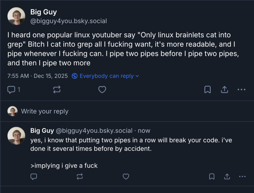 arrow-up1357arrow-down1imagecat posttitle.txt | grep memelemmy.worldalias_qr_rainmaker@lemmy.world to linuxmemes@lemmy.world · 3 days agomessage-square50fedilink
