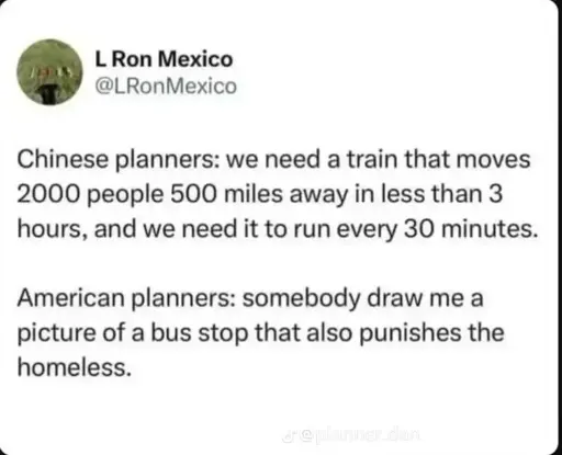 Yes, but also, there’s no reason to move 2000 people 500 miles in less than 3 hours in the US.