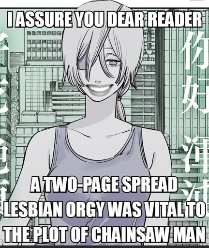 Sine_Fine_Belli@lemmy.world to Animemes@ani.social · 22 days agoLesbian orgylemmy.worldimagemessage-square14fedilinkarrow-up1157arrow-down14