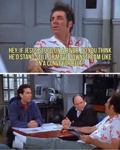 Probably stand still otherwise that walking on the sea part of the Bible would have been hilarious as Jesus flips all over the place in the waves as the disciples yell, “Oh shit! OH FUCK!”