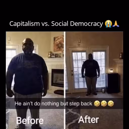 A capitalist nation pursuing social democracy is still a capitalist nation. The meme is showing how the economic hierarchy remains the same pre and post social democracy.