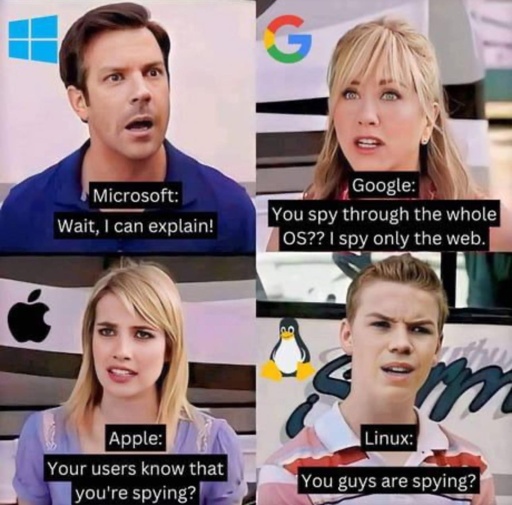 the closest thing Linux has to spying is the strictly opt-in Debian package popularity contest lol