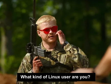 Anybody not using Arch, by the way, must wear an arm band with the logo of their distro.