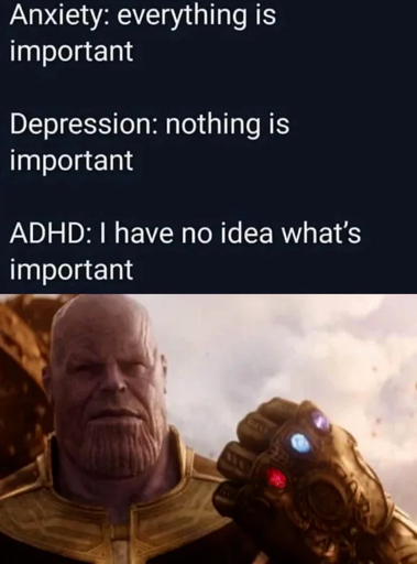 arrow-up1406arrow-down1external-linkWhat's the point of worrying about something if I'm probably just going to forget it anyway?lemmy.worldThe Picard Maneuver@lemmy.world to ADHD memes@lemmy.dbzer0.comEnglish · 8 months agomessage-square17fedilink