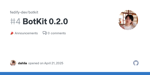 We're pleased to announce the release of BotKit 0.2.0! For those new to our project, BotKit is a TypeScript framework for creating standalone ActivityPub bots that can interact with Mastodon, Missk...