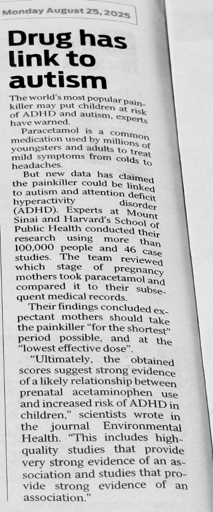 “Ultimately, the obtained scores suggest strong evidence of a likely relationship between prenatal acetaminophen use and increased risk of ADHD in children,” scientists wrote in the journal Environmental Health. "This includes high-quality studies that provide very strong evidence of an association and studies that provide strong evidence of an association.