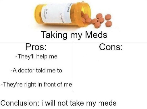 minus-squareAganim@lemmy.worldlinkfedilinkEnglisharrow-up2·2 months agoDon’t leave out tachycardia, the sole reason I can’t take any stimulants.😞 I miss the focus and mental calm lisdexamfetamine gave me. Not having a storm of thoughts in my head was such a nice state to be in.