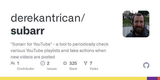 Index an entire channel/playlist or get “older” videos. Subarr’s RSS approach is specifically for “subscriptions”: new video is posted, take some action Media management. Once Subarr kicks off the post-processor (like yt-dlp), its job is done. Use Plex/Jellyfin/etc or another one of the linked solutions above if you require more control over your media