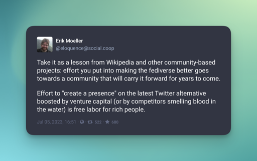 arrow-up17arrow-down1imageBuilding the fediverse is an investment in us and the open web.lemmy.worldHiramFromTheChi@lemmy.world to Fediverse@lemmy.worldEnglish · 2 years agomessage-square3fedilinkfile-text