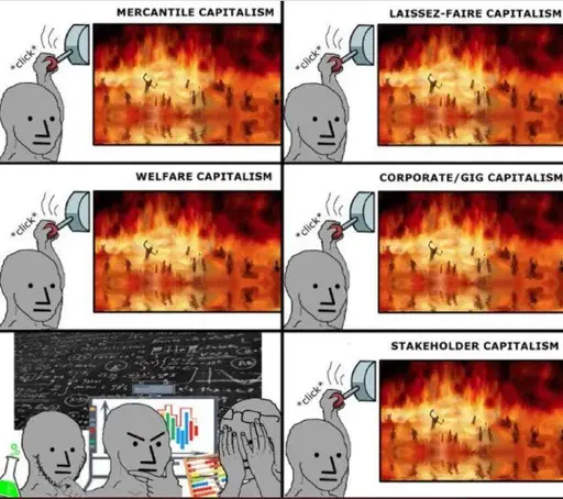 Keyword is in theory - in practice, everything else in the system goes against that, leads to overproduction and having us proletariat work for much higher hours than is socially necessary, it concentrates wealth to private owners giving them immense political power. That’s what communists are trying to do - progress forward so we produce not for profit, but for use based on need which would solve these issues.