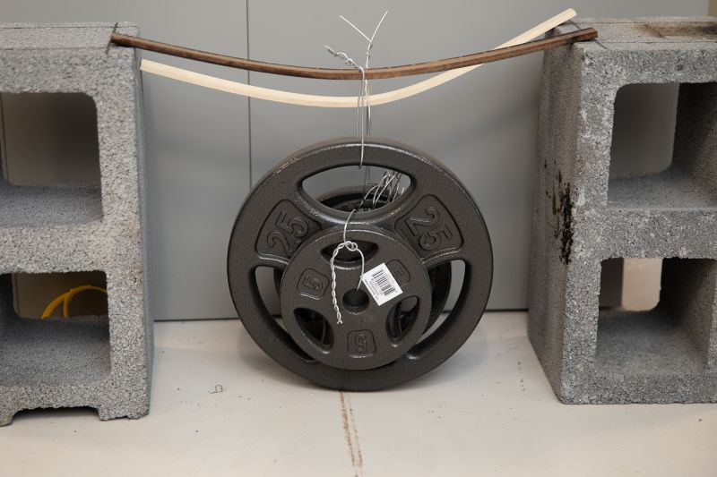 Um… what exactly is this picture of a weight sitting on the ground under a bent piece of wood supposed to show us?