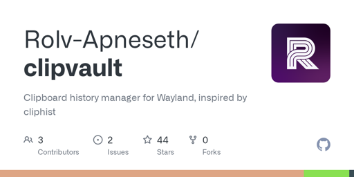 cm0002@no.lastname.nz to Linux@programming.dev · 6 hours agoClipvault - Clipboard history manager for Waylandplus-squaregithub.comexternal-linkmessage-square0fedilinkarrow-up111arrow-down12